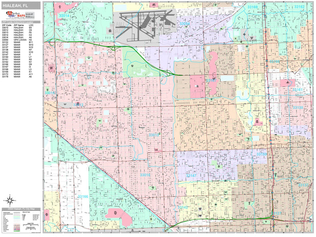 Premium Style Wall Map of Hialeah, FL. by Market Maps โ American